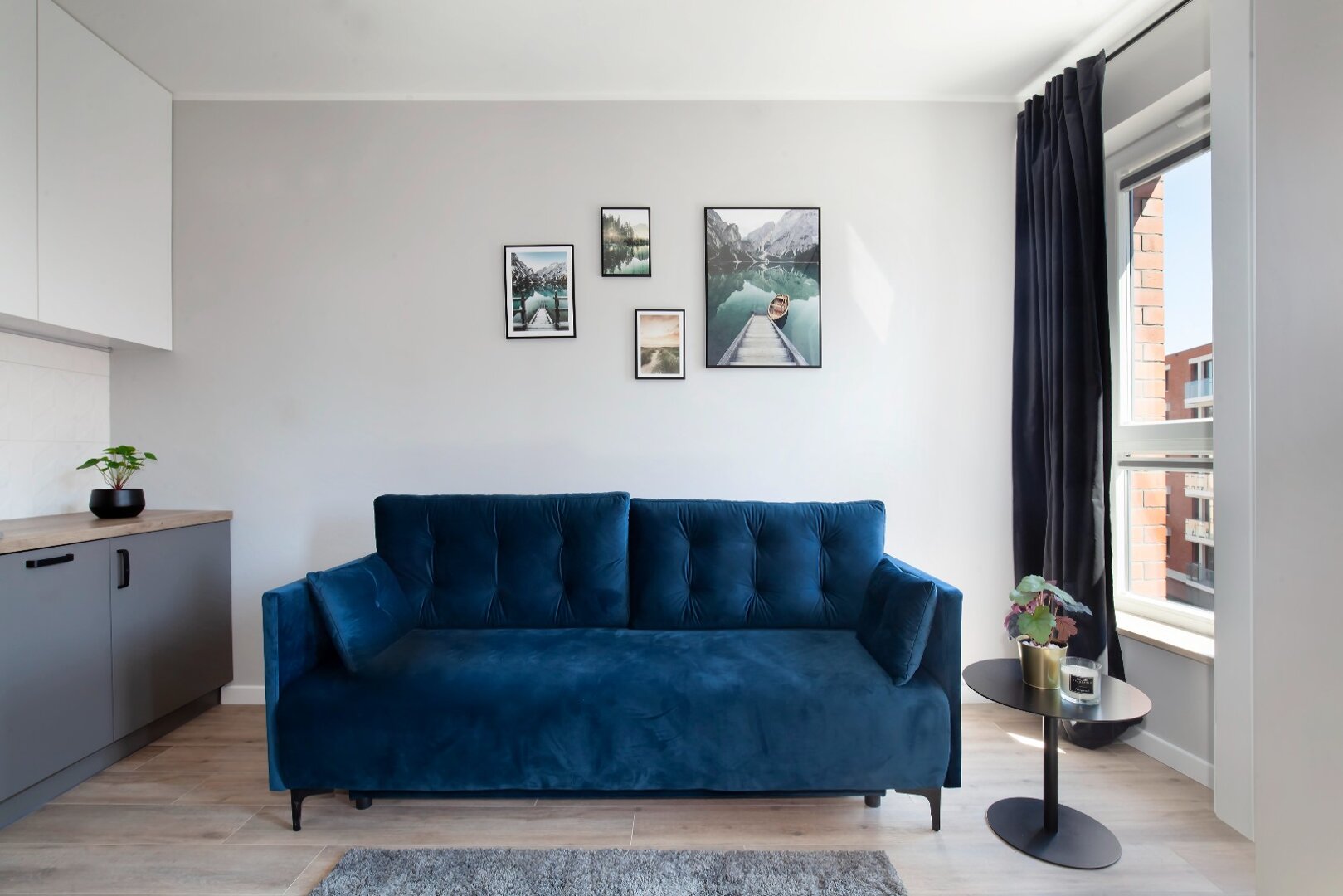 Apartament typu studio 27 metrów kwadratowych położony na 3 piętrze w nowoczesnej kamienicy. Idealny dla dwóch osób, opcja zakwaterowania nawet 3 osób. Mieszkanie całkowicie wyposażone w wysokim standardzie. Otwarta przestrzeń z aneksem kuchennym, pełna zabudowa z AGD: lodówka, płyta indukcyjna, zmywarka, czajnik elektryczny, pralka. W salonie rozkładana sofa, składane łóżko pojedyncze, stolik, telewizor, balkon, bezpłatne WiFi. Prywatna łazienka z prysznicem.