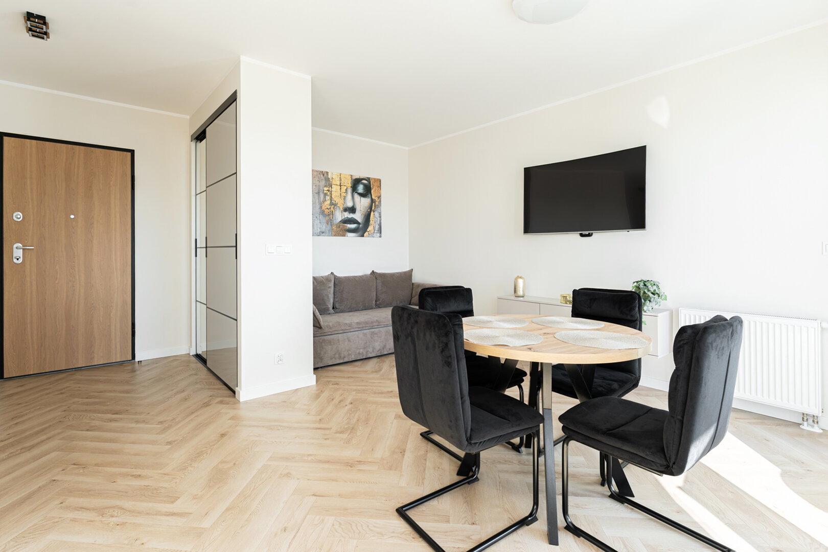 Apartament 45 metrów kwadratowych położony na XII piętrze w nowoczesnym wieżowcu usytuowanym na ulicy Statrowiejskiej. Mieszkanie doskonałe dla dwóch osób ceniących komfort i wygodę, możliwość zakwaterowania czterech osób. Mieszkanie całkowicie wyposażone. Salon z aneksem kuchennym, w kuchni: lodówka, płyta indukcyjna, piekranik, czajnik elektryczny. W salonie rozkładane łóżko - sofa, telewizor, stół, cztery krzesła. Balkon z widokiem na STADION POLSAT ARENA, bezpłatne WiFi. W sypialni duże podwójne łóżko. Prywatna łazienka z prysznicem. Nowoczesna dzielnica, restauracje, punkty usługowe, spacerkiem na plażę w Brzeźnie. W cenie apartamentu miejsce w hali garażowej.