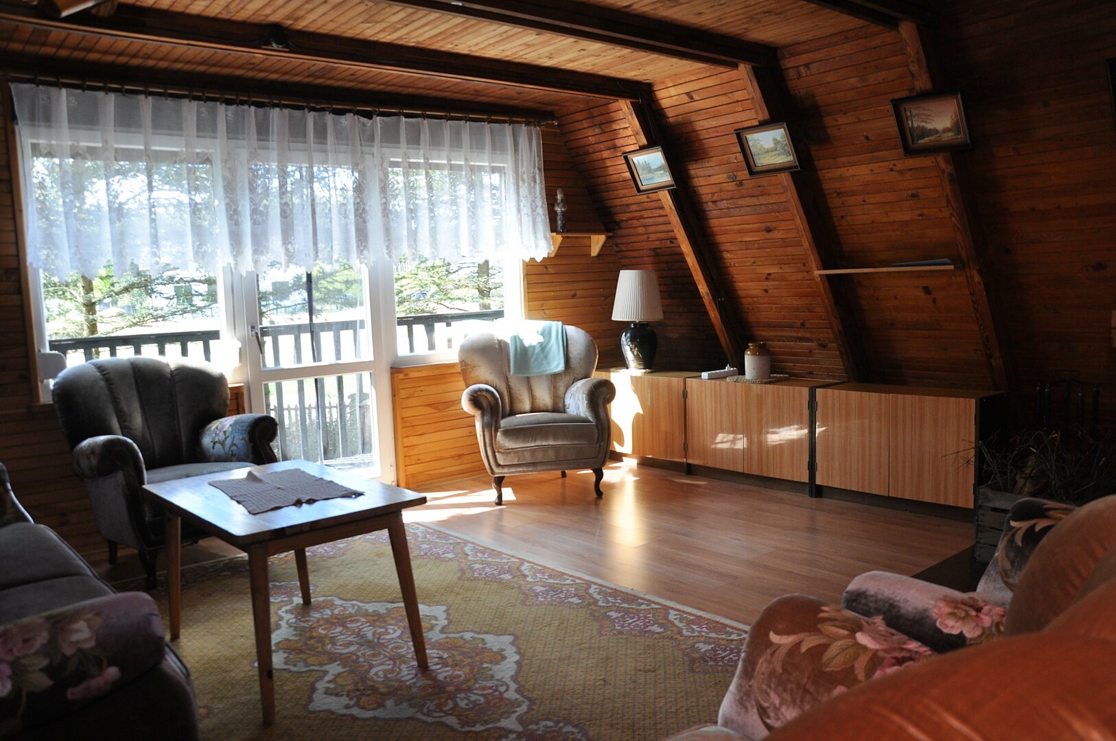 Do 8 osób –4 sypialnie, salon z kominkiem i balkonem, 2 łazienki, kuchnia (w pełni wyposażona) z jadalnią i piękny, ogrodzony teren wokół domu z grillem i miejscem na ognisko
